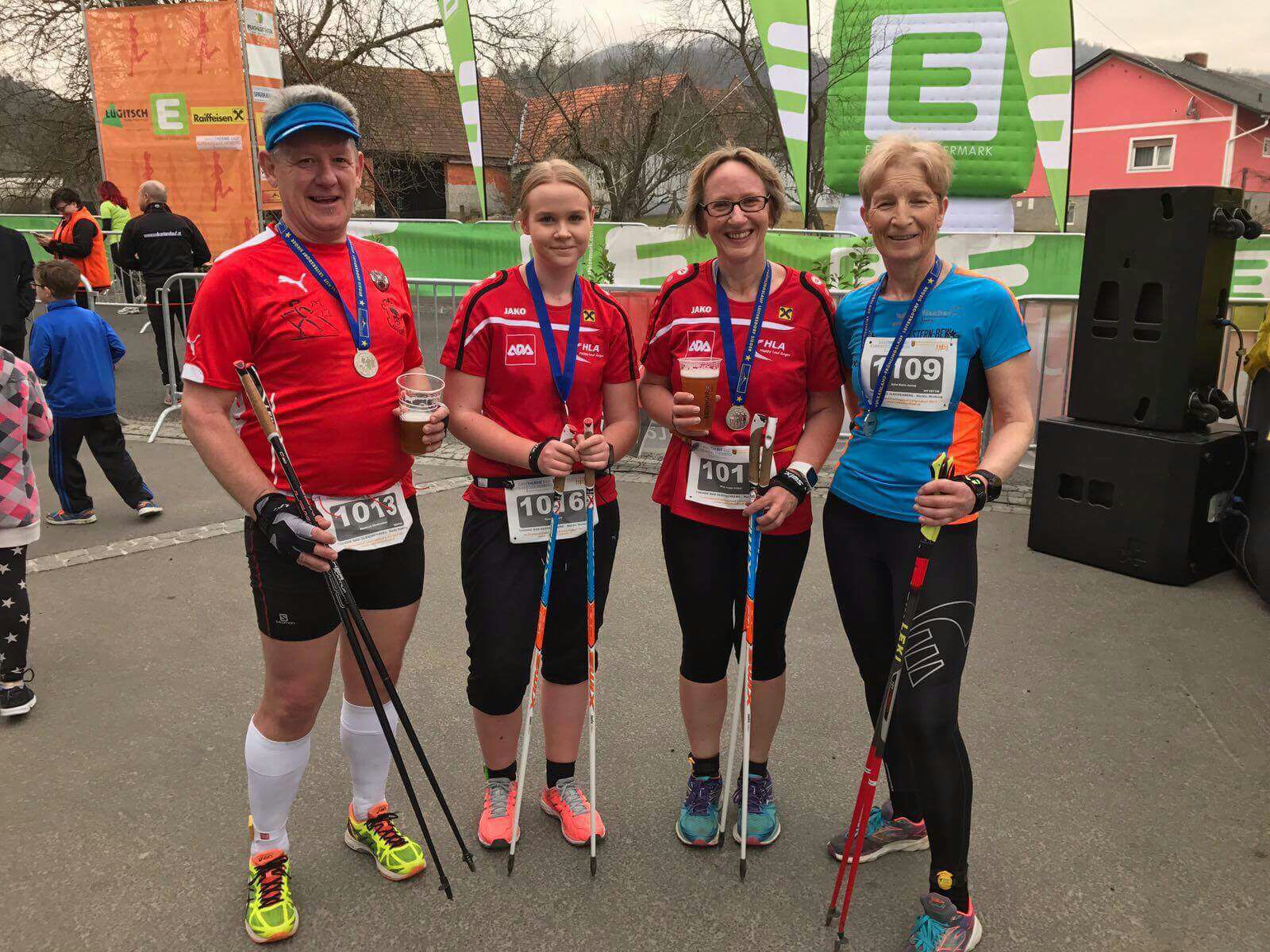 Judith und Tamara Pirker absolvierten den 4,219 km Nordic Walking Frauen Bewerb. Judith gewann mit der Zeit von 0:27:52 Min. Bronze, Tamara walkte mit 0:32:46 Min. auf den tollen 10. Platz.