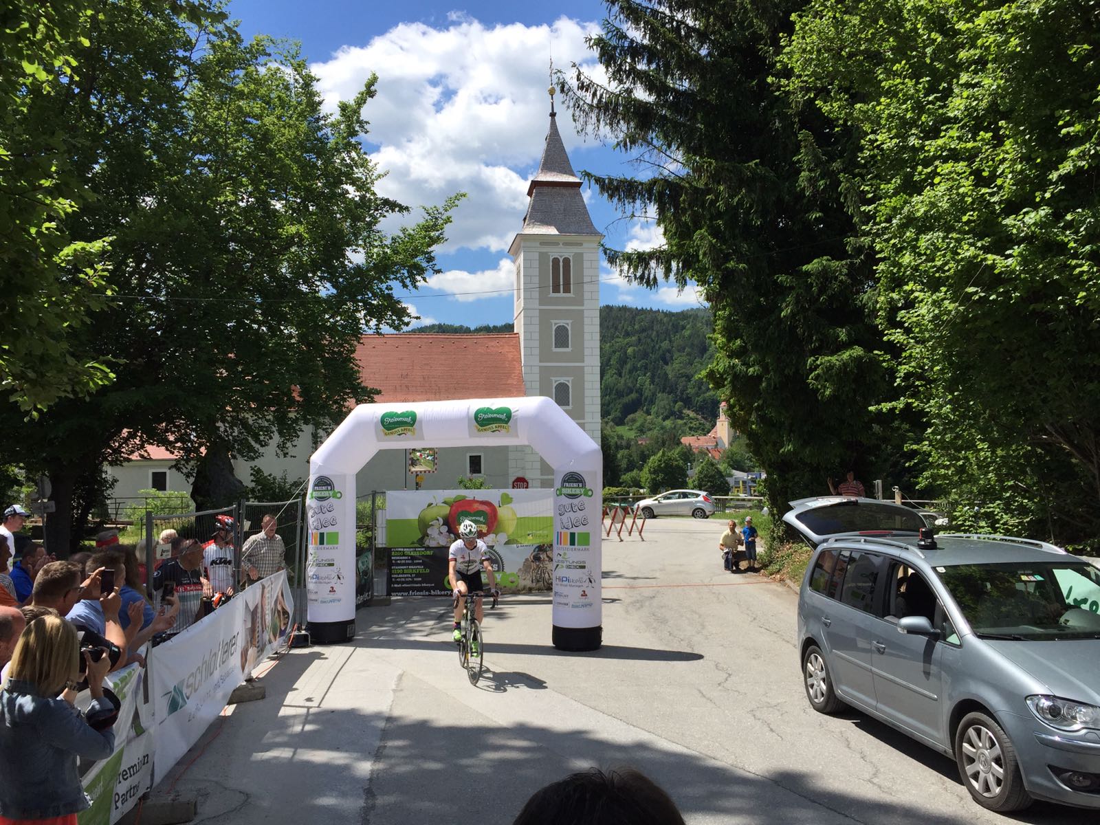Der Start - Zielbereich ist beim Parkplatz der Fa. ADA Auersbach (oberhalb der Vierzehn-Nothelfer-Kirche) in Anger. Die Wende ist auf Höhe der BMX Bahn in Brand.